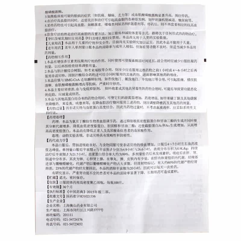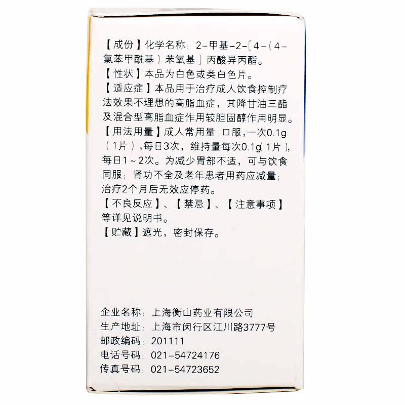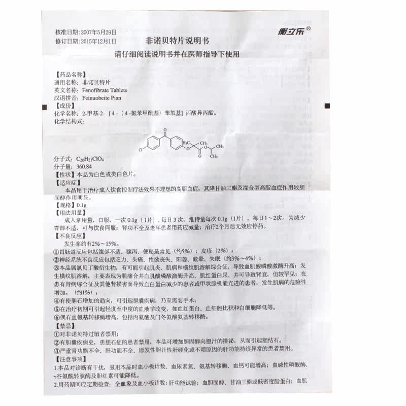 Low to 10 5 boxes) Henglilac Nonofibrate sheet 0 1g * 100 slices * 1 bottle of box for treatment of adult dietary control Liaofa Effects Indesirable hyperlipidaemia
