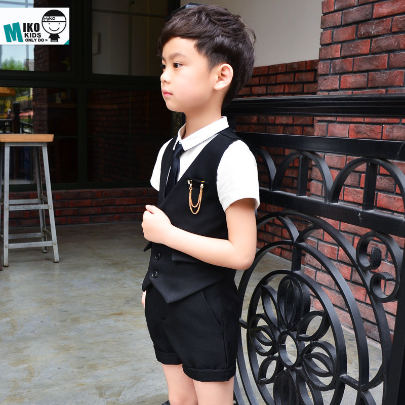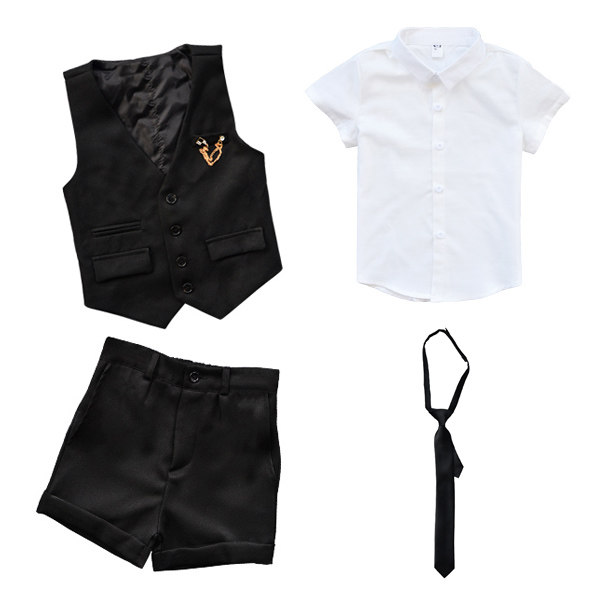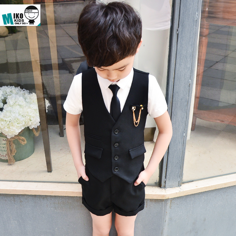 Boys vest dress suit Korean version of the tide 3 summer 4 children's small suit 5 Boys short-sleeved five-point pants three-piece set 6 years old
