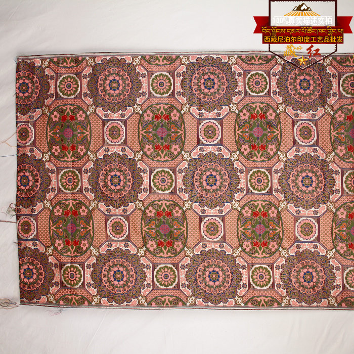 Saffron Nepal imported ivory base exquisite caisson mandala map TV Buddhist hall background fabric silk satin