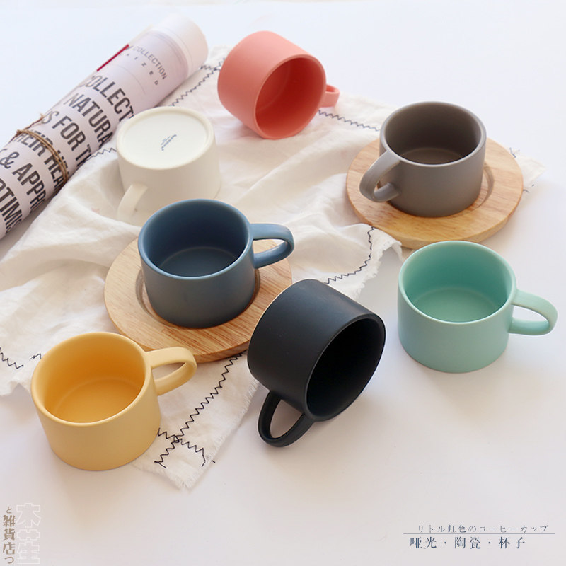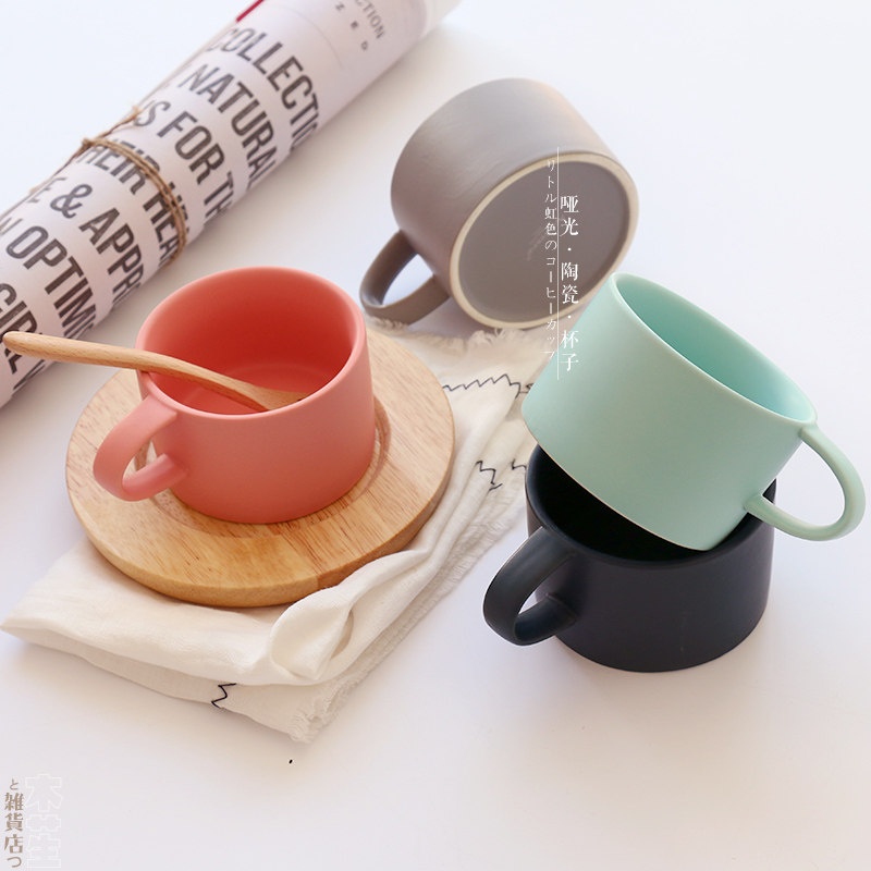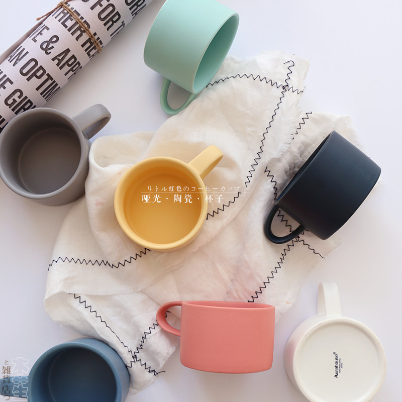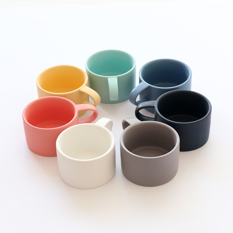 Japanese Macaron Matte Frosted Ceramic Coffee Cup Handy Water Cup Mug Breakfast Handle Cup