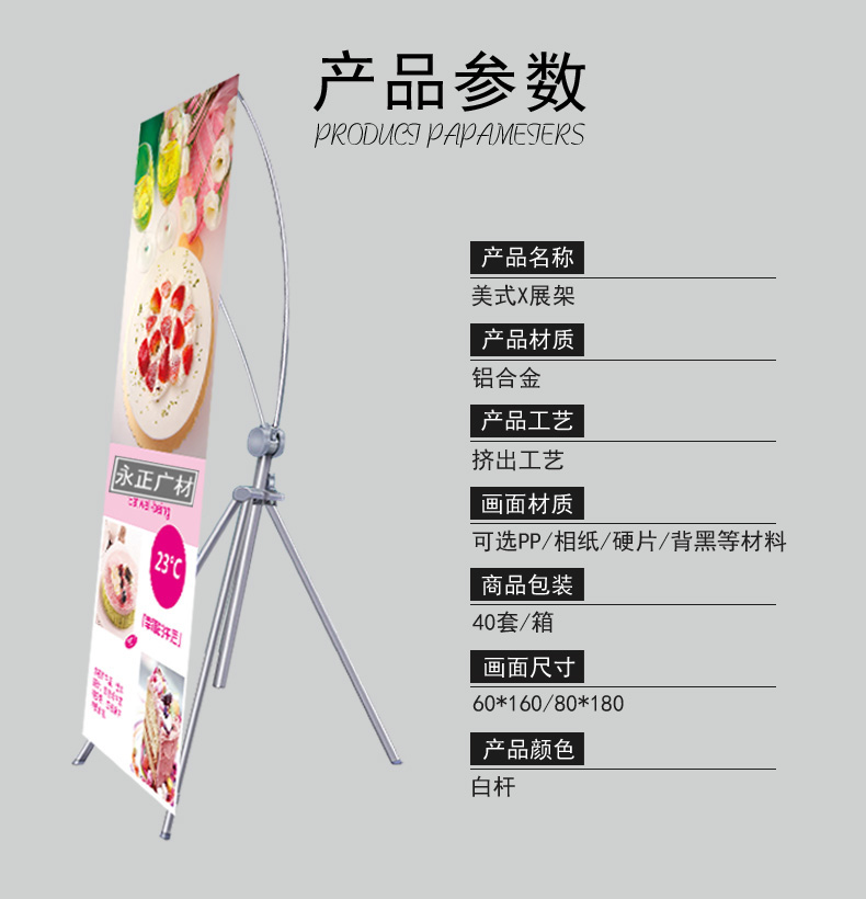 American adjustable X exhibition rack poster shelf Aluminium Alloy Bracket Vertical Advertising Display Materials Wholesale