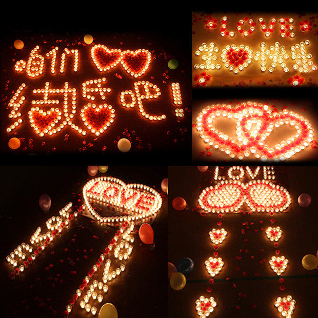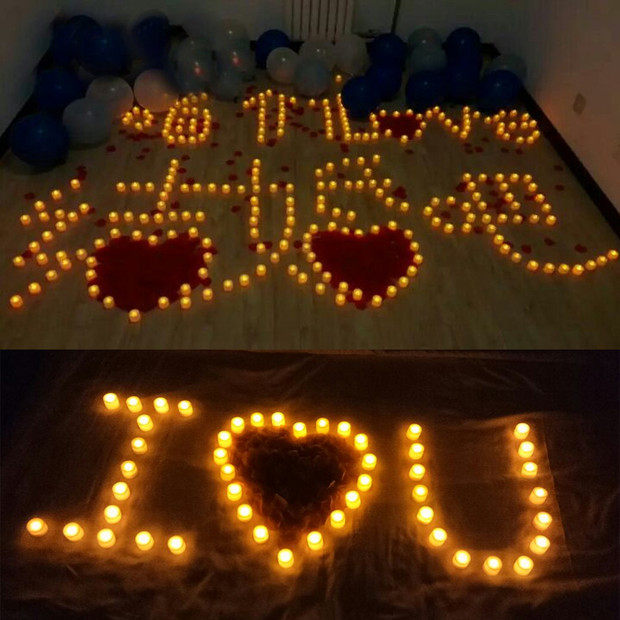 Proposal white props birthday party decoration scene arranged wedding electronic LED candle romantic heart shape creativity