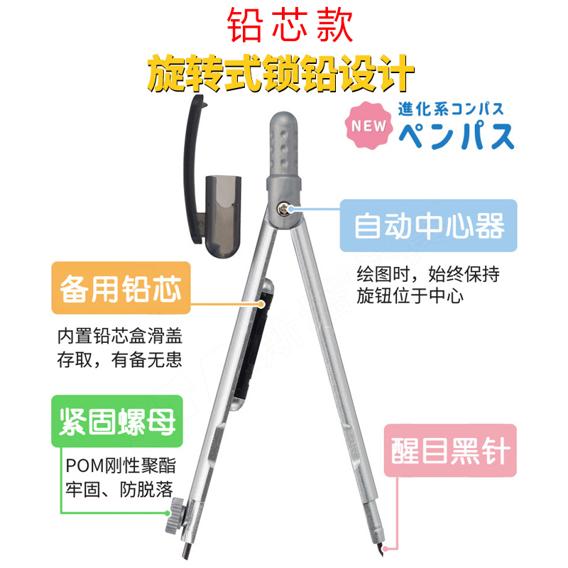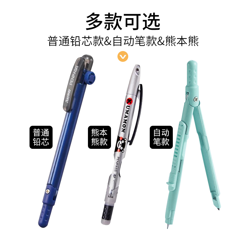 Japan Raymay Fujii JC801 JC600 Student math pen compass Mechanical pencil safe portable compass Ruler set Multi-purpose student Primary school Junior high school high school student