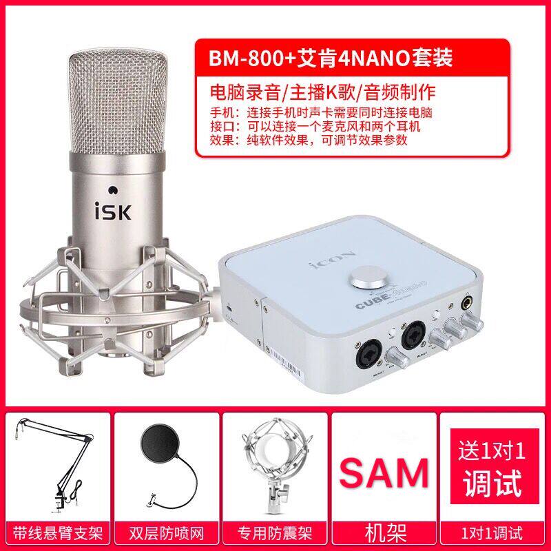 Eken ICON 4nano sound card ISK BM800 microphone computer anchor live external link sound card suit