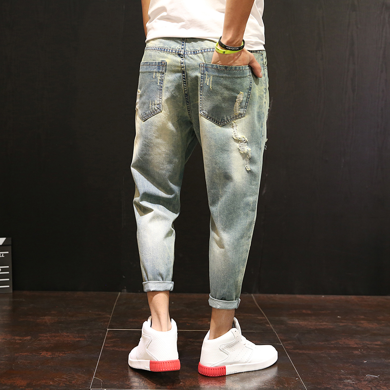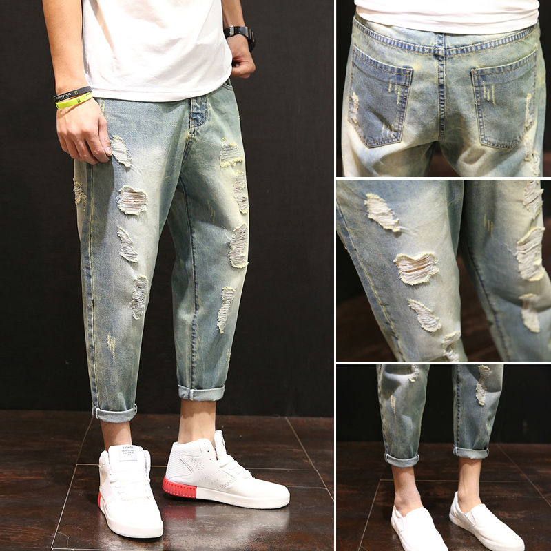 Broken Hole Jeans Men 90% Pants Loose Summer Thin pants men's 2022 new small feet Chaoshage 9 points