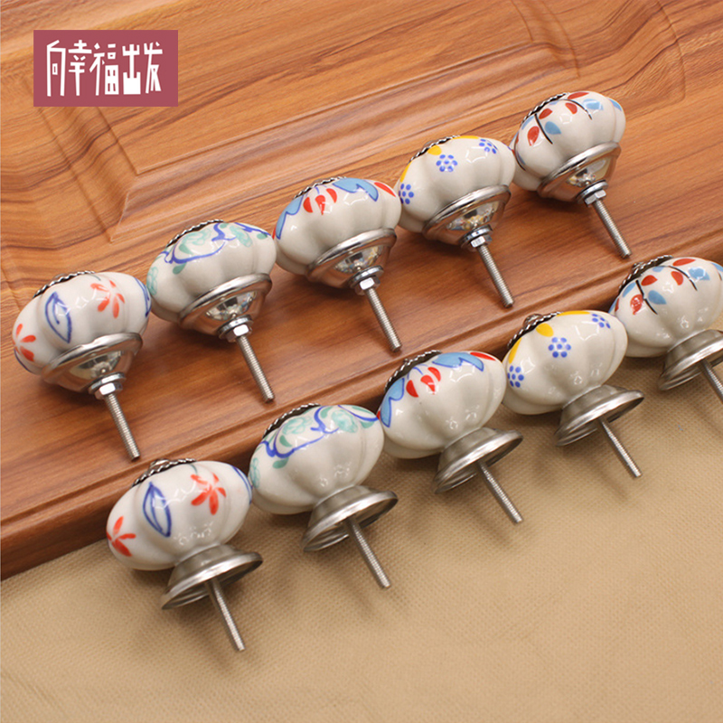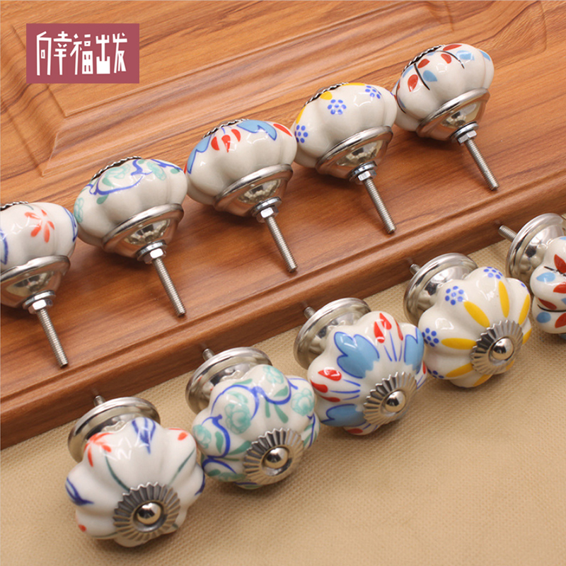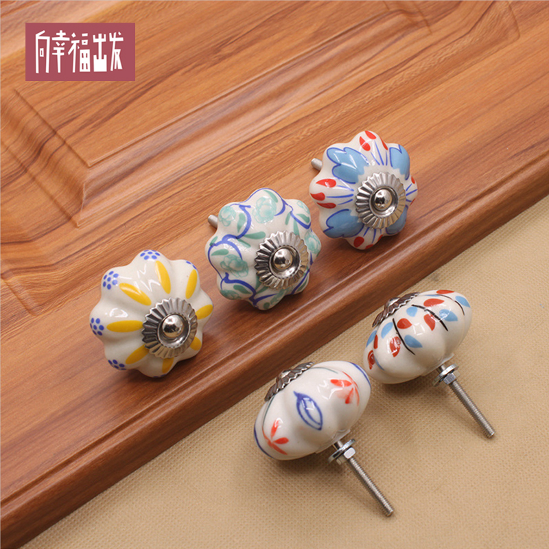 Foreign trade classic pastoral painted pumpkin ceramic handle furniture wardrobe overall cabinet wine cabinet TV cabinet drawer door handle