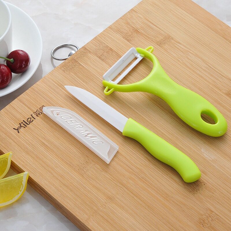 Kitchen ceramic knife Two sets of green paring knife melon and fruit peeling machine Kitchen With Fruit Knife Suit