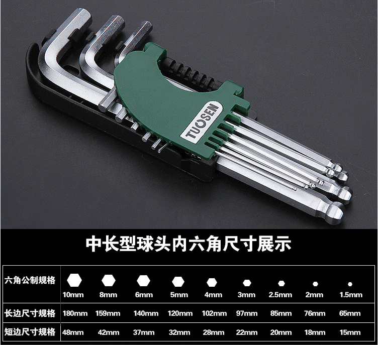 Mid-length 9-piece inner hexagonal lengthened 9-piece inner hexagonal