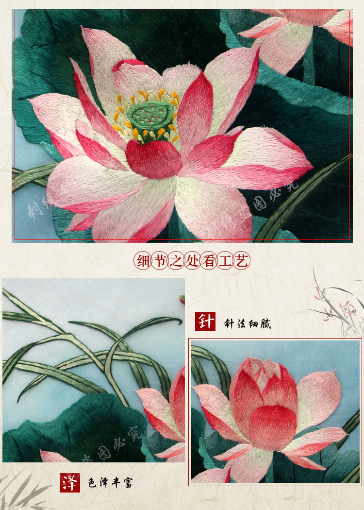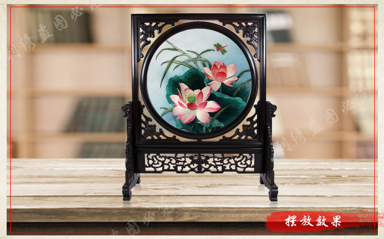 Xiang embroidery boutique lotus embroidery living room decoration painting pure hand painting sending elders high - end art small screen