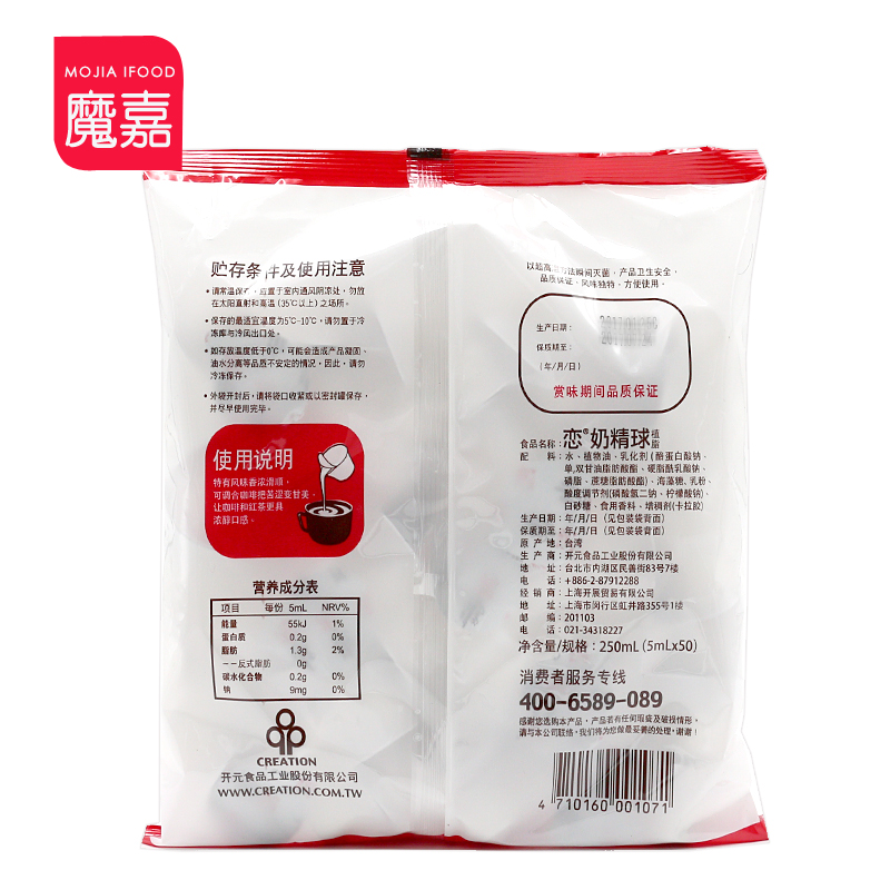 Love brand cream ball Taiwan coffee partner love cream ball 5mlx50 coffee ball milk sugar bag