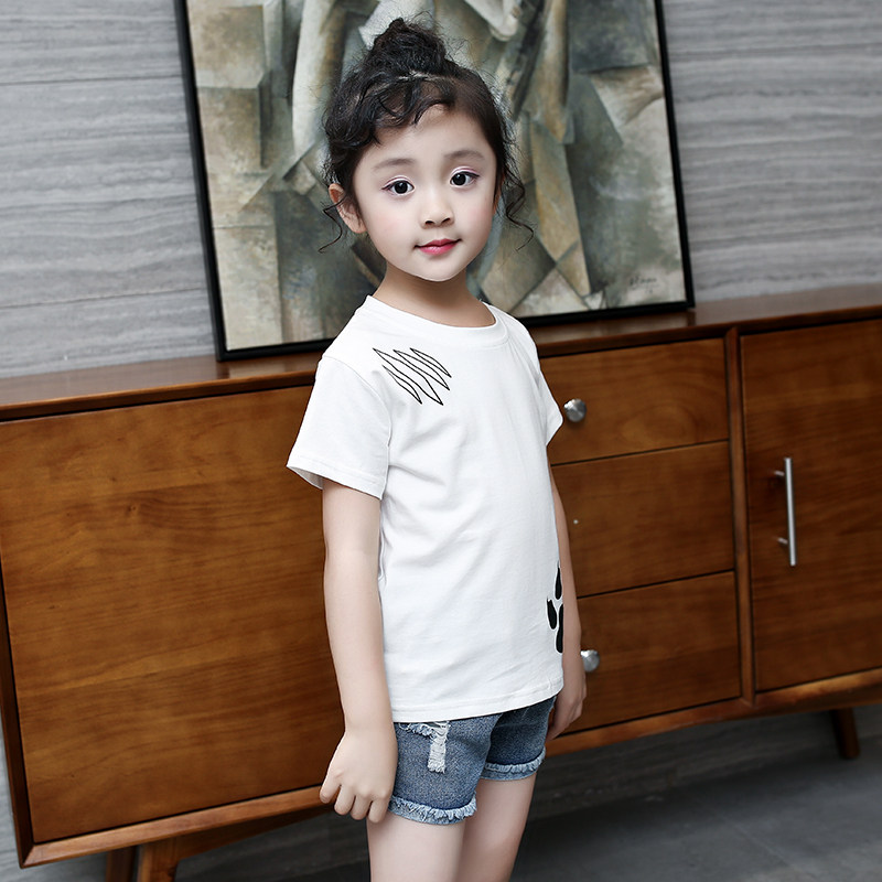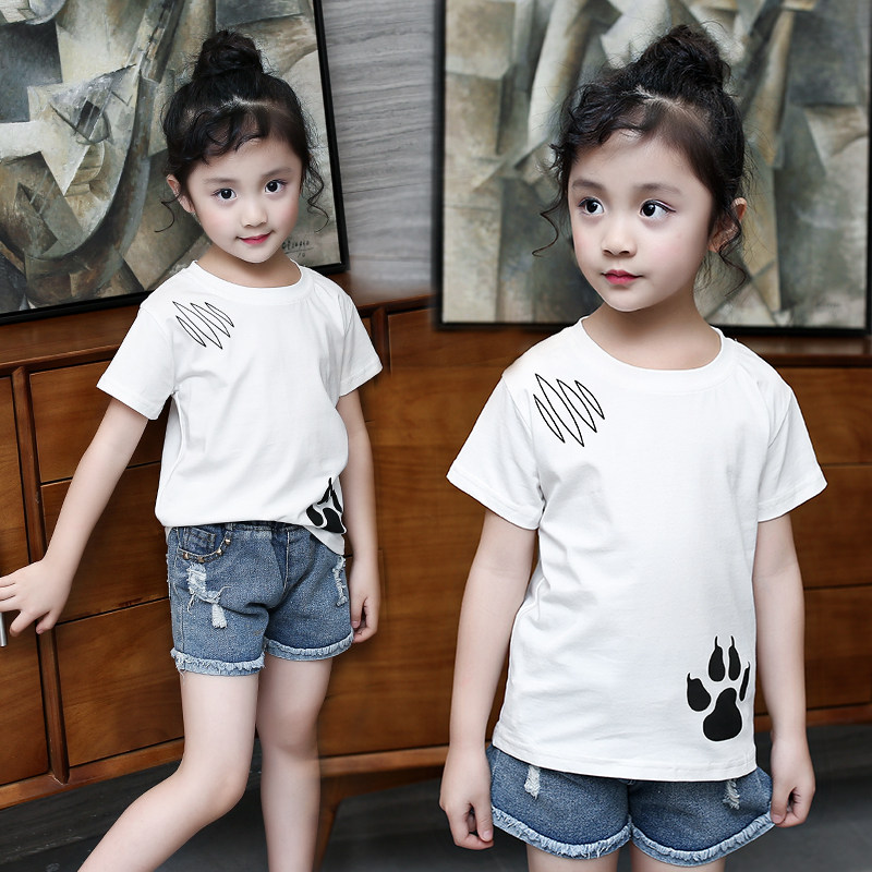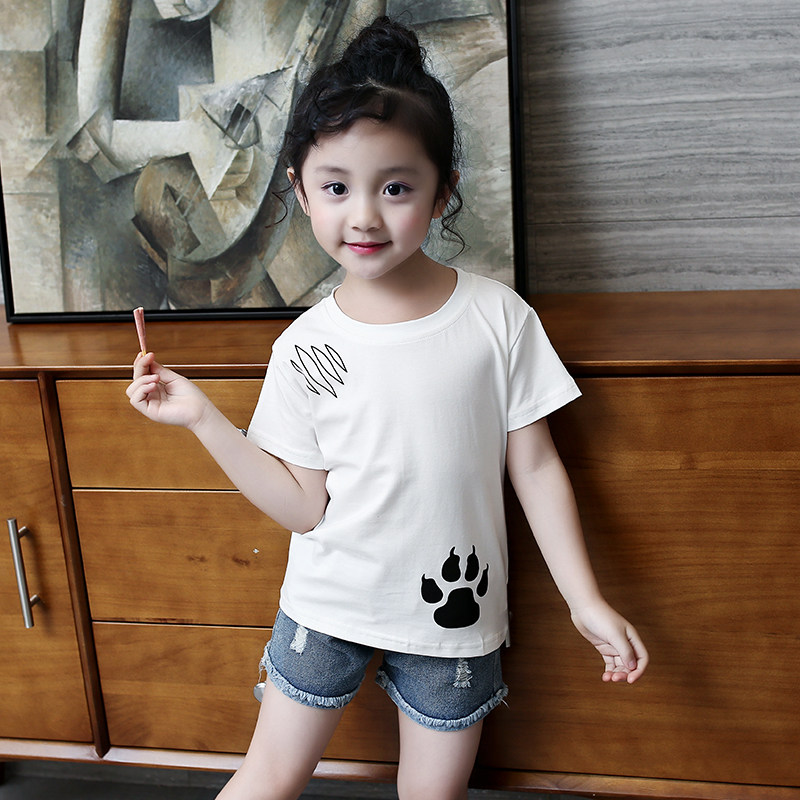 Girls short-sleeved T-shirt 2021 new summer children's middle and large children's top pullover Western style cotton fashion base shirt