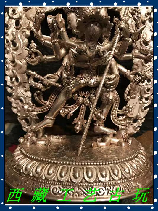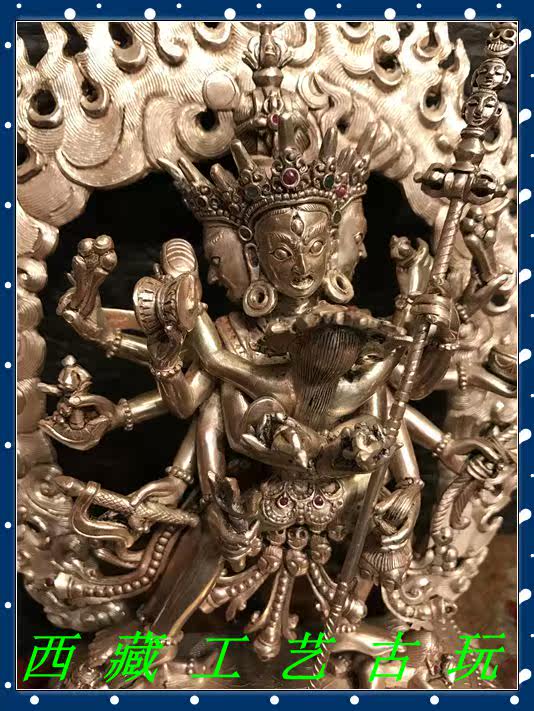 Tibet Nepalese craftsmanship pure silver < time wheel King Kong > Buddha statue