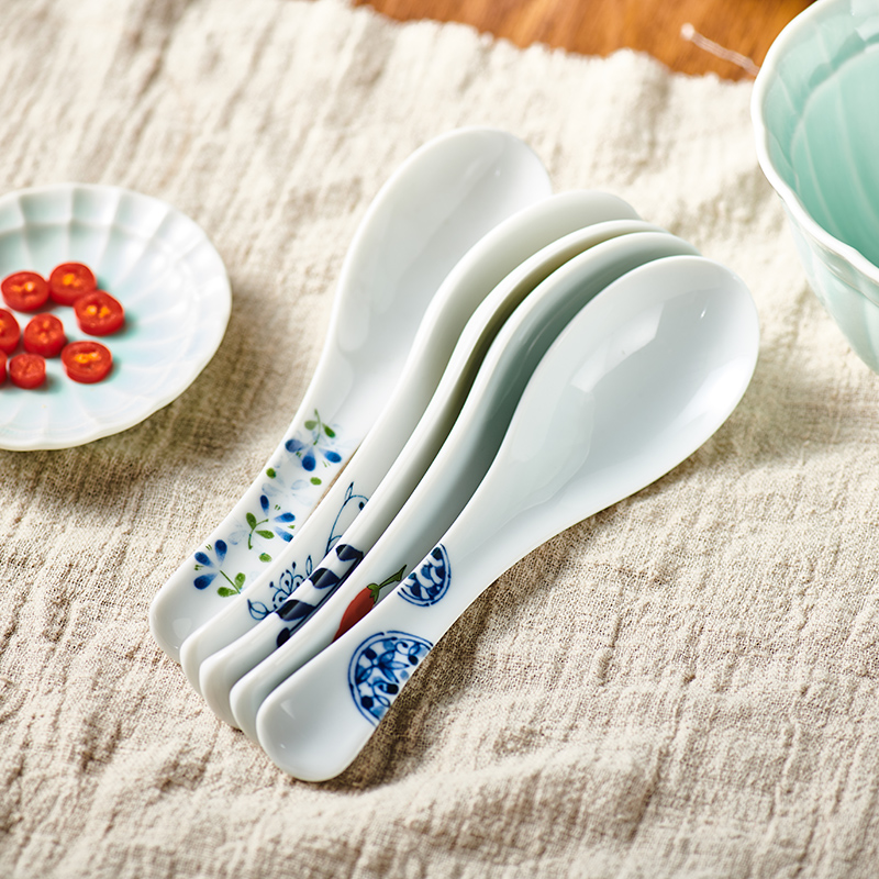 Ceramic King] Japan imported Mino underglaze color Japanese household ceramic long handle spoon rice spoon spoon spoon