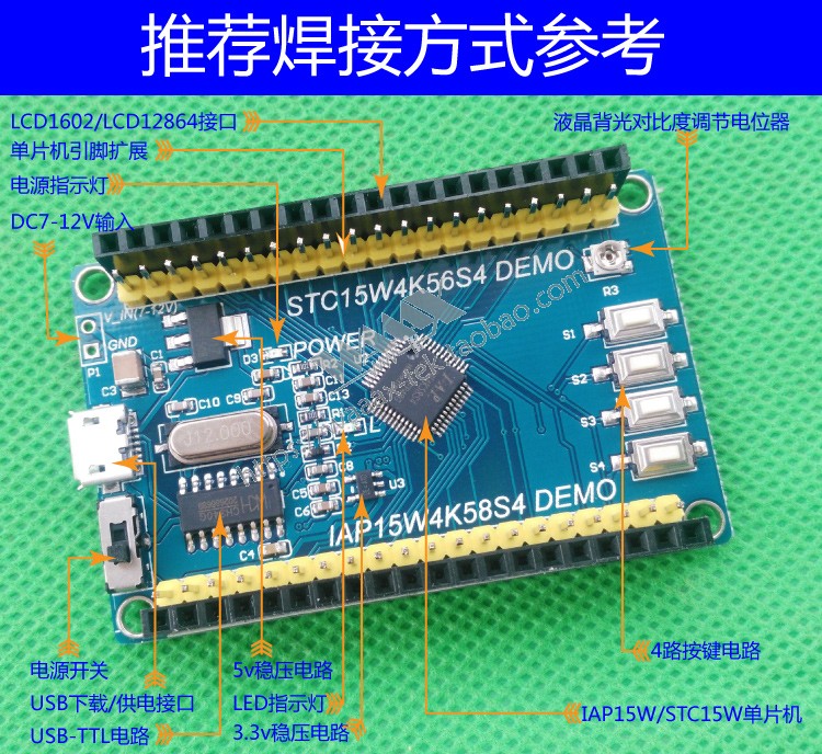 STC15 single chip minimum system IAP15W4K58S4 core board STC15W4K56S4 simulation