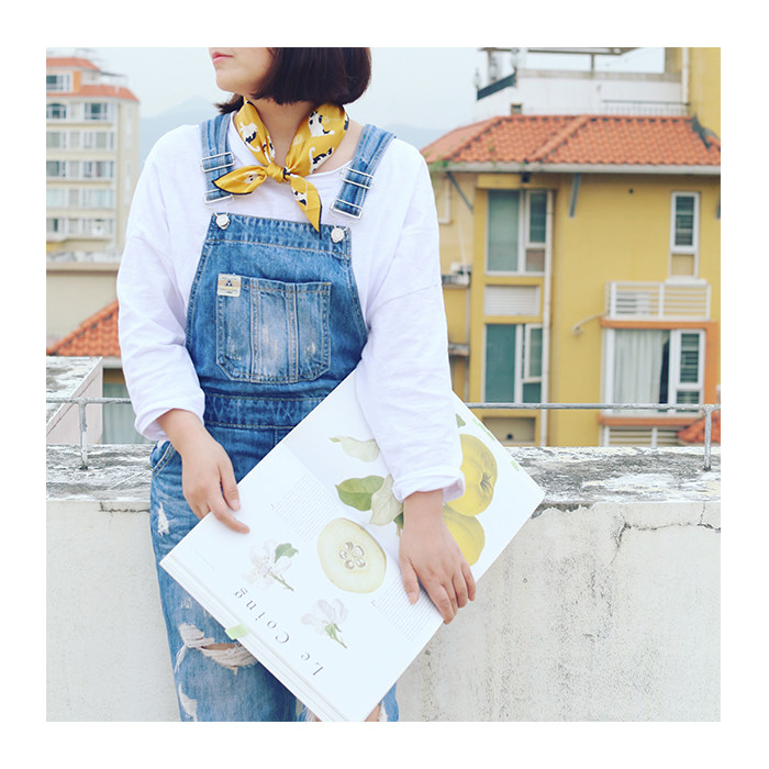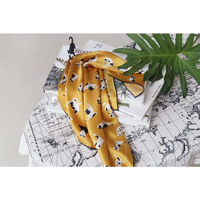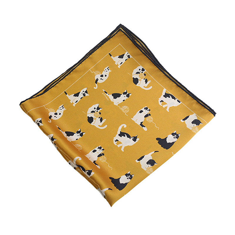 Week Small Pocket Original Cat Retro Yellow Genuine Silk crepe satin small square towel Less youthful teenage girl clarity