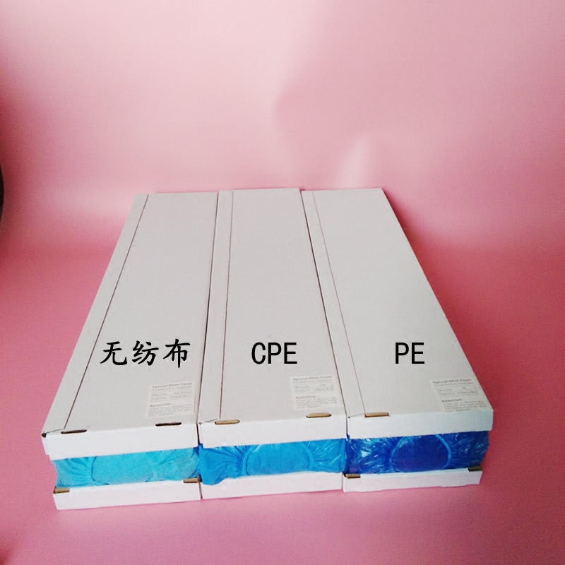 Short box of 100 pieces of PE shoe covers Short box of 80 pieces of CPE non-slip shoe covers Short box of 50 pieces of non-woven shoe covers Long box of 200 pieces of PE shoe covers Long box of 160 pieces of CPE non-slip shoe covers