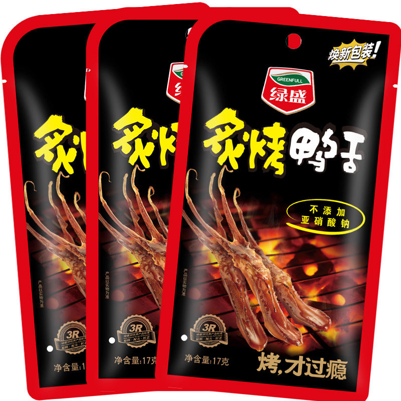 Green Sheng Roasted Duck Tongue 17g*3 Packs Braised Duck Meat Cooked Duck Tongue Meat Snacks Roasted Duck Tongue
