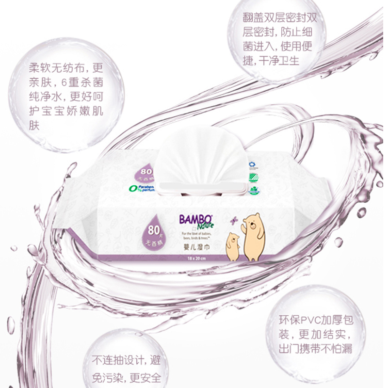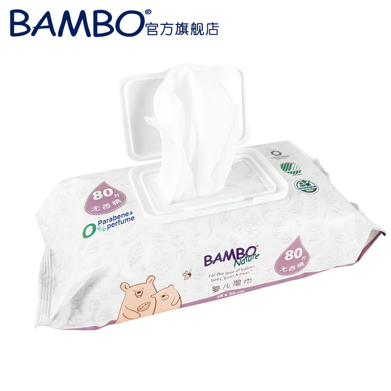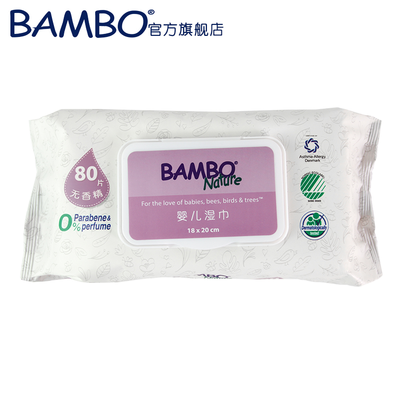 BAMBO Bambo baby clean moisturizing and moisturizing towel 80 pumping 3 bags Swiss SGS certified eco-friendly hand-mouth wet wipes