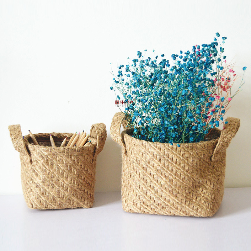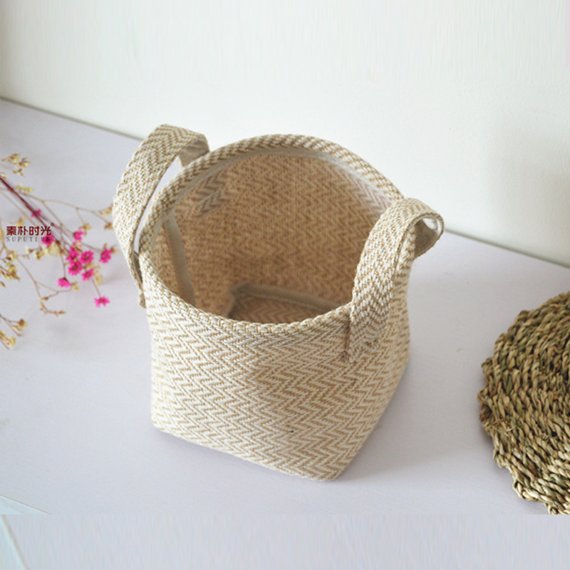 Cotton Hemp Cloth Art Containing Basket Frame Tabletop Debris Basket Portable Snack Containing Box Multifunction Disposal Basket Flower Pot Cover