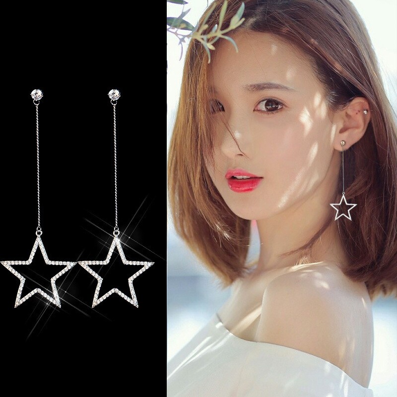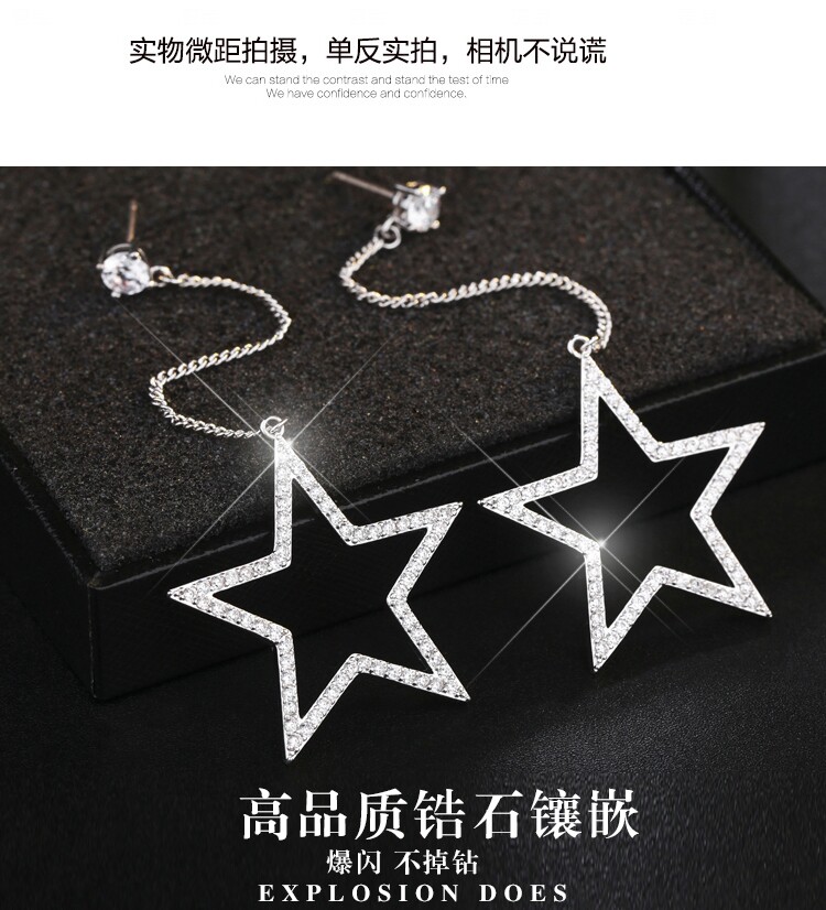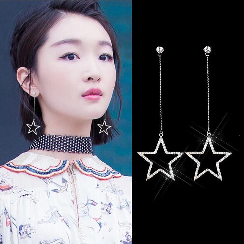 South Korea Spike Pure Silver Female Long Version Temperament Exaggerated Pentagram Zircon soulin Susear Allergy S925 Silver Ear Ring
