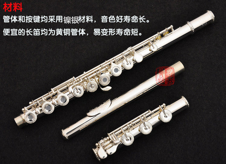 Flute musical instrument beginner 17-hole opening French key cover carved B- tail silver-plated C tune Haizway