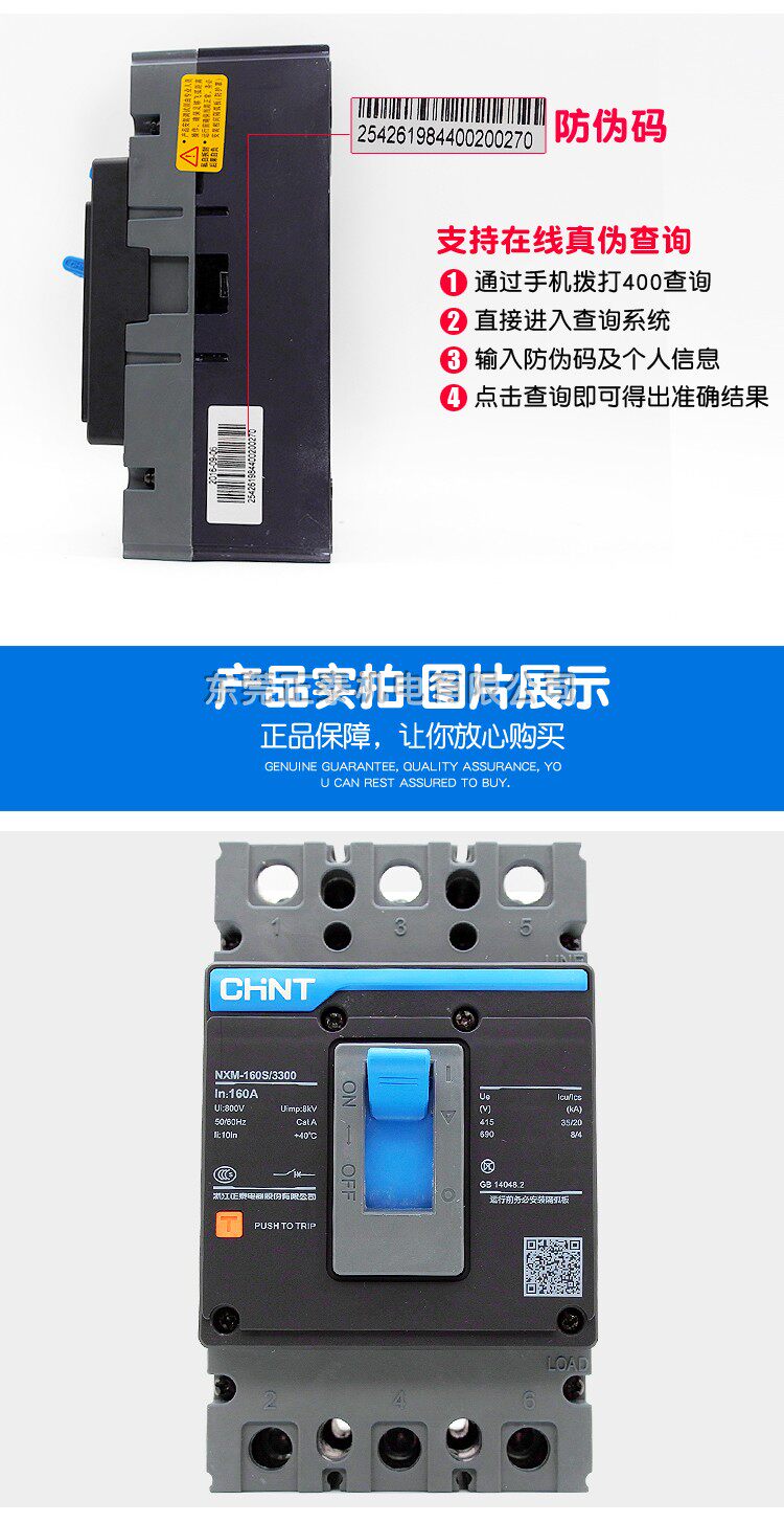 CHNT Zhengtai Kunlun NXM-160S 3300 plastic shell breaker 125A 160A in place of NM1-125S