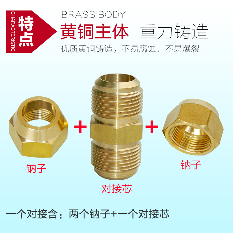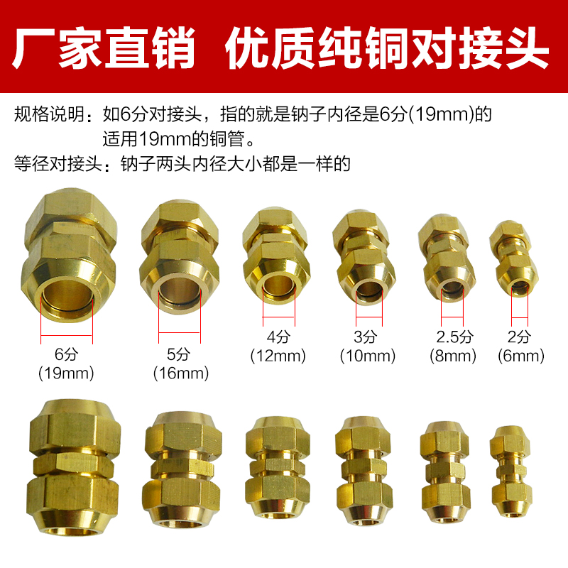 Air conditioning Yingying copper tube docking head with screw cap double joint nut thickened double joint 2 points 3 points 4 points 5 points 6 points