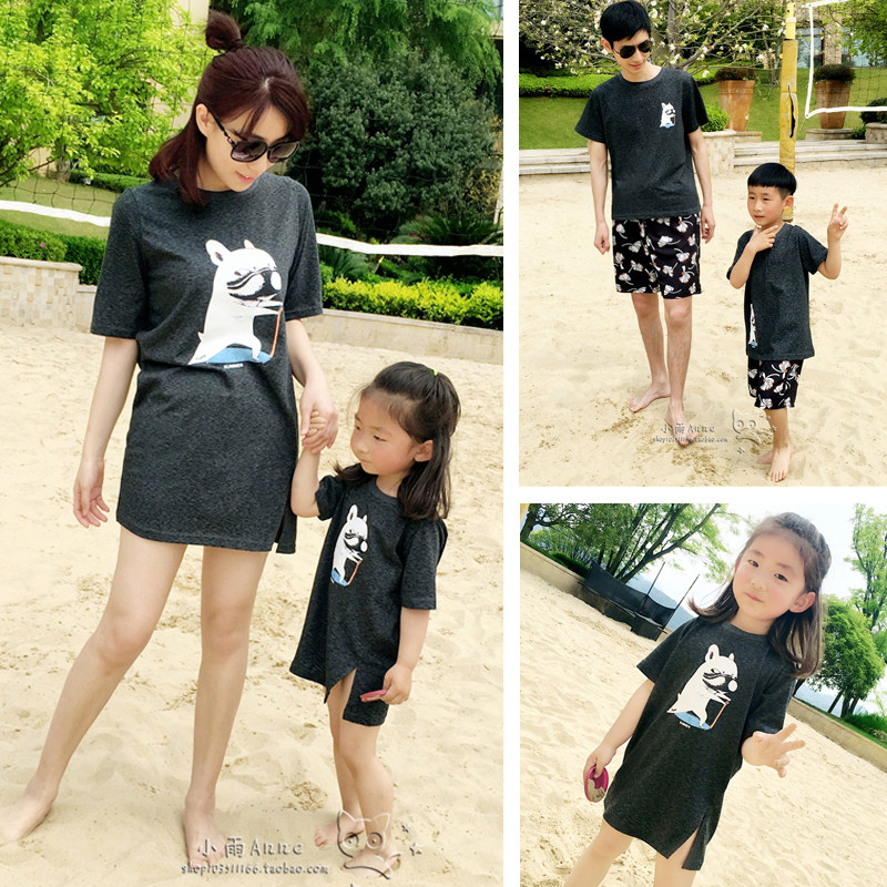 South Korean seaside beach holiday large size pro-sub-dress summer dress mother woman skirt and son T-shirt family of three families