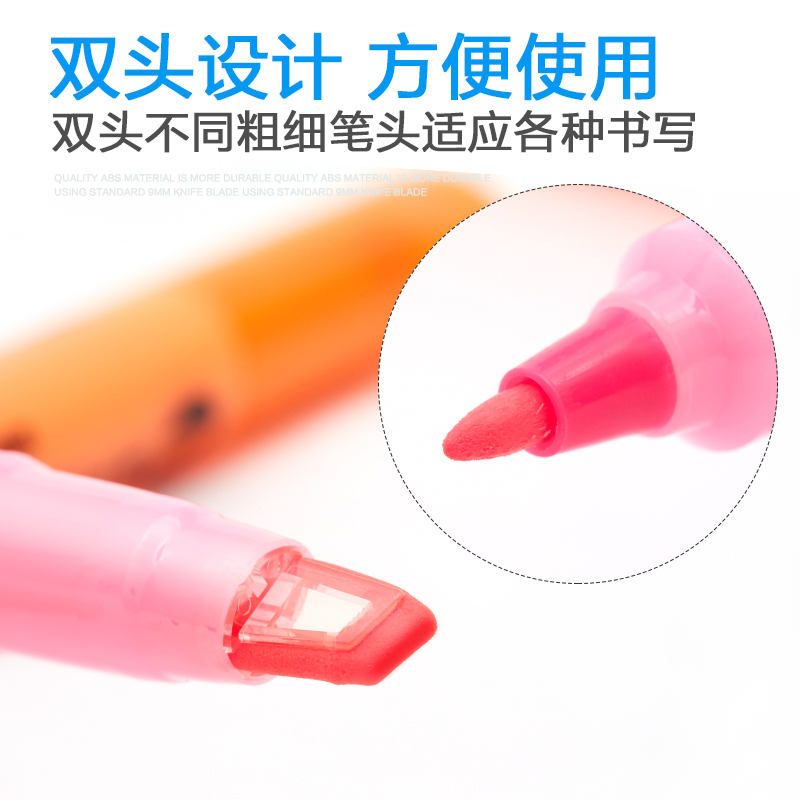 Japan UNI Mitsubishi PUS-102T dual head light color fluorescent pen PROPUS perspective window fluorescent pen student note pen stationery making notes The colorful pen silver light rough drawing focus Little Qingxin