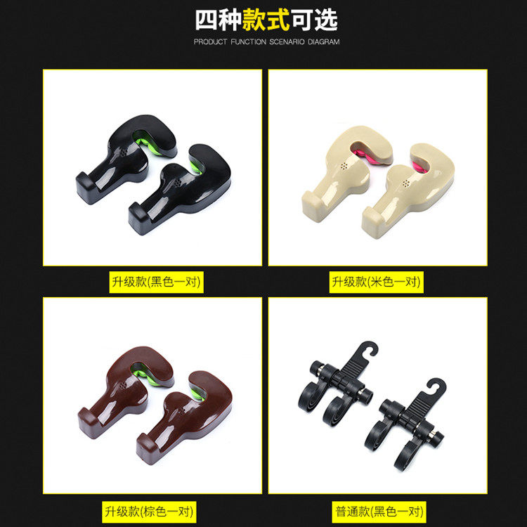 No-disassembly headrests One pair of coffee color No-removal headrests One pair of black headrests No-removal headrest One pair of beige double-hanging black hooks One pair