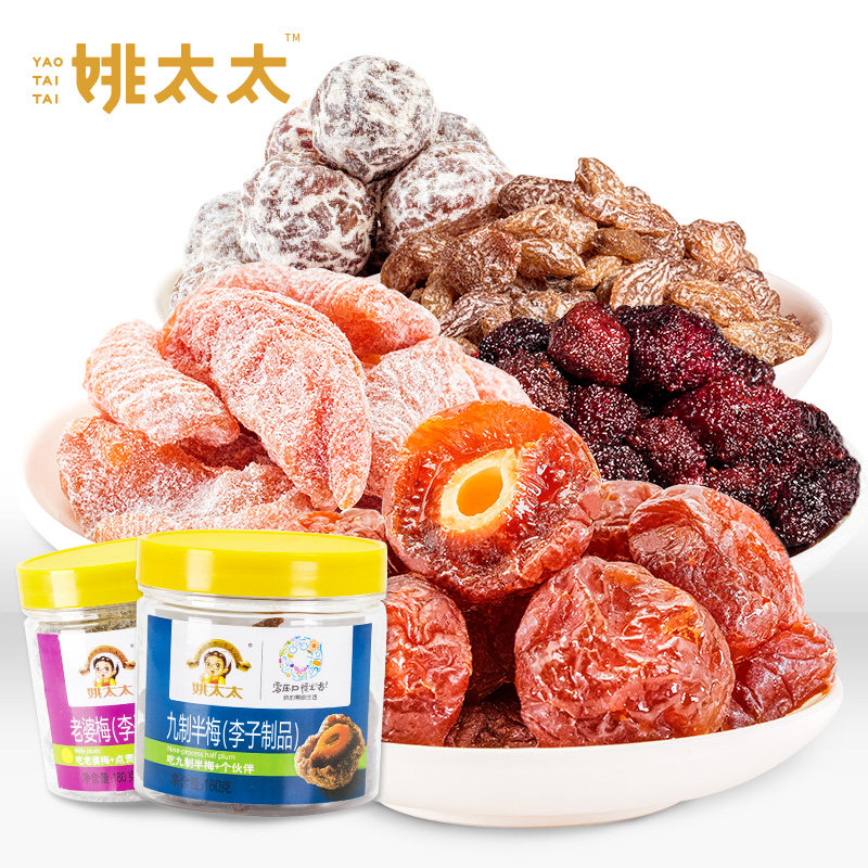 Mrs Yao Candied fruit combination 5 cans Nine-made bayberry semi-plum sweet and sour plum fruit dried preserved fruit Leisure snacks