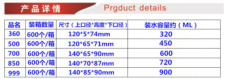 360 360 transparent 50 (capacity approc. 320 ml) 360 white 50 (capacity approc. 320 ml) 500 transparent 50 (capacity approc. 450 ml) 500 white 5