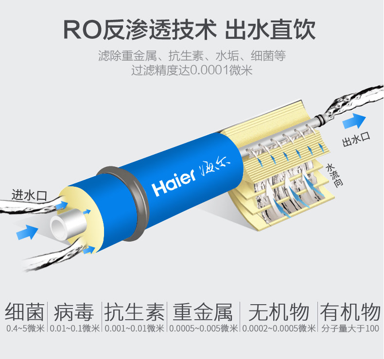 Haier water purifier Household direct drink kitchen tap water filter purifier RO reverse osmosis pure water machine water purifier