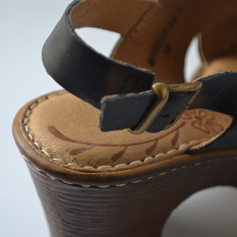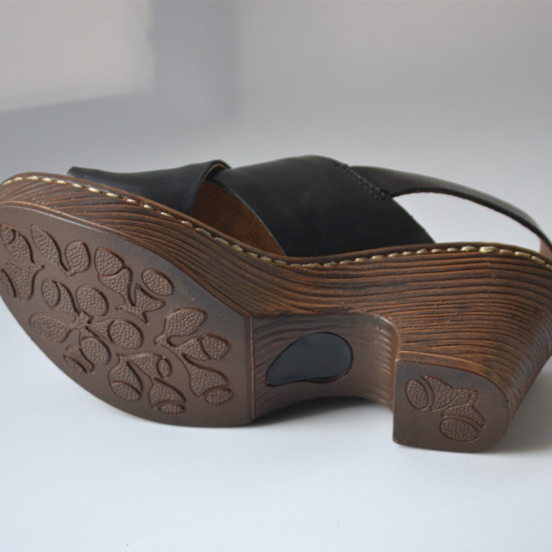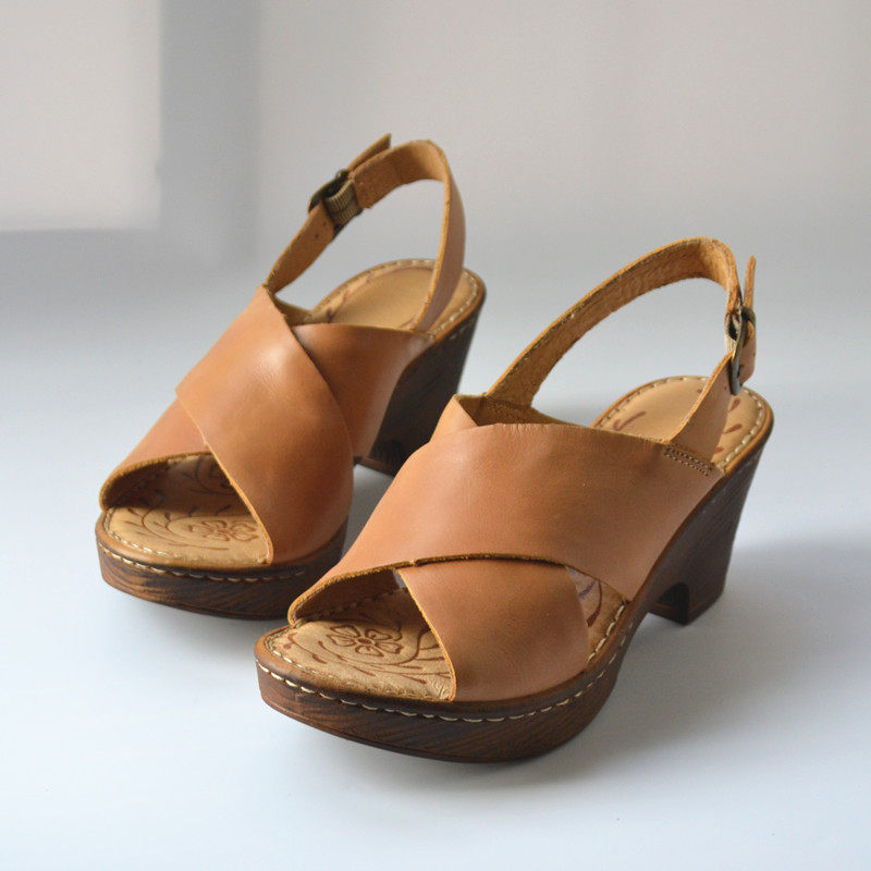 Summer retro European and American style leather thick high-heeled sandals cowhide pure leather brand simple all-match women's shoes foreign trade tail goods