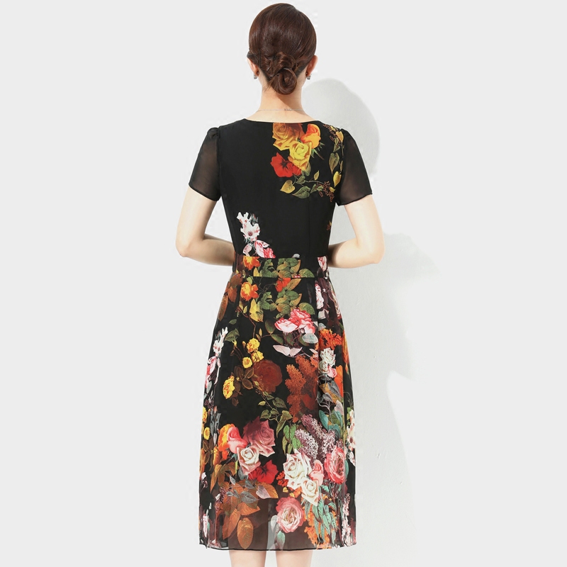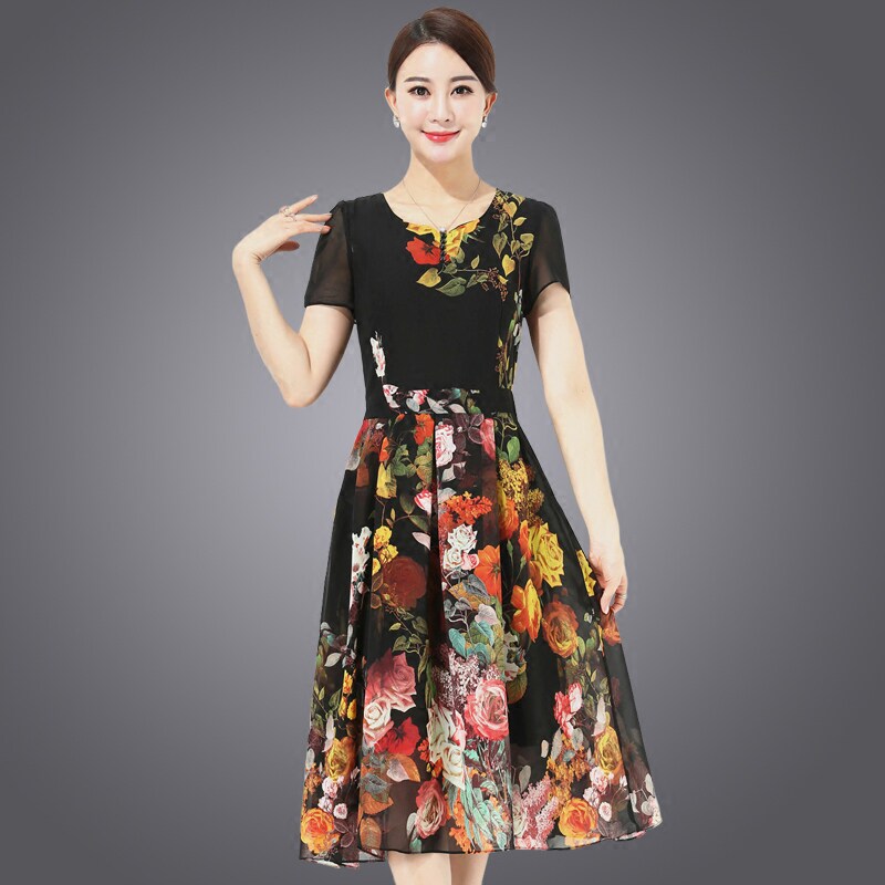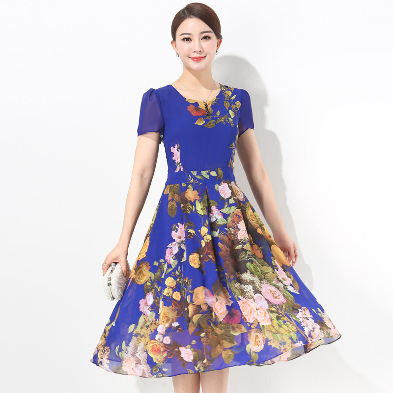 Special price chiffon dress women's long version of summer dress Korean version slim thin middle-aged mother dress big flower skirt