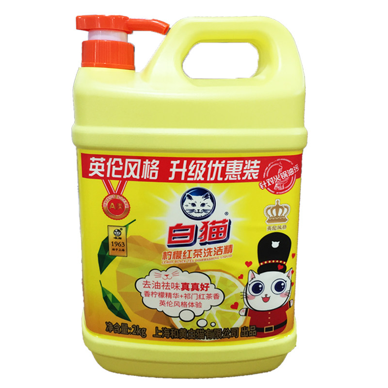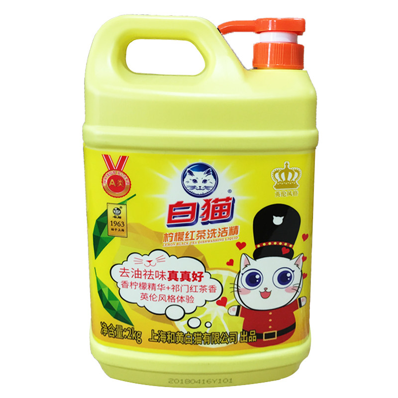 White cat lemon black tea detergent degreasing does not hurt hands detergent FCL 2kg*8 bottles of large barrels for household commercial use