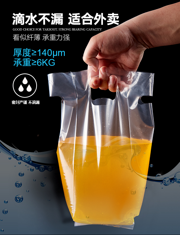 Transparent plastic bag thickened disposable coffee milk tea beverage packaging bag delivery lunch box packaging bag 100