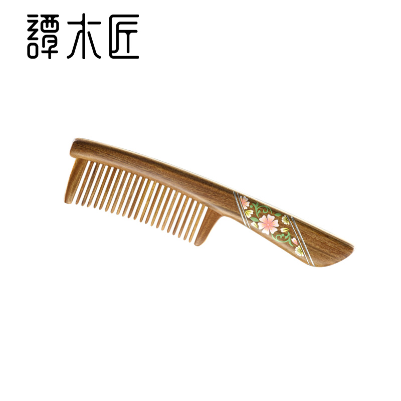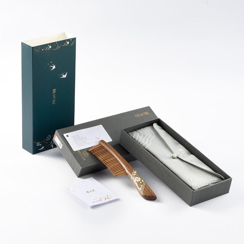 Tan Carpenter Tooth Comb Box Flower jade sandalwood comb Personal cleaning care Romantic Gift Comb