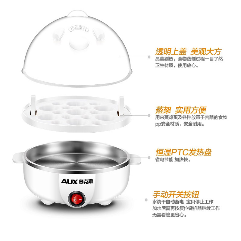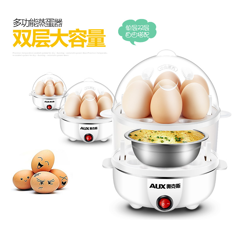 Oakes Boiled Egg machine multifunction stainless steel Automatic power cut Mini chicken egg spoon Small double layer egg machine Steamed Egg