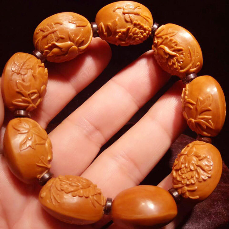 Su Gong famous olive beard olive core carving Nan Gong flower blossom rich peony flower male and female style Wen play bracelet bracelet