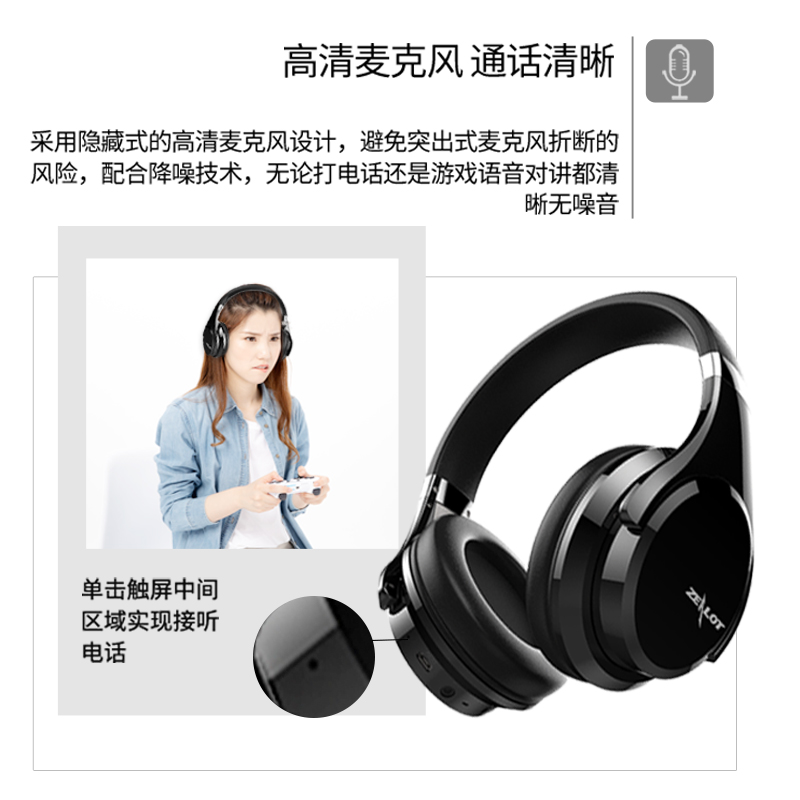 ZEALOT fanatic Bluetooth headset headset wireless binaural large Earmuffs Ear-type cool wired mobile phone version can plug-in dual use with Mike noise reduction e-sports headset game listening to songs