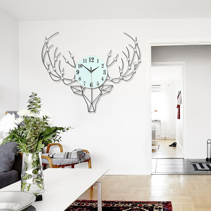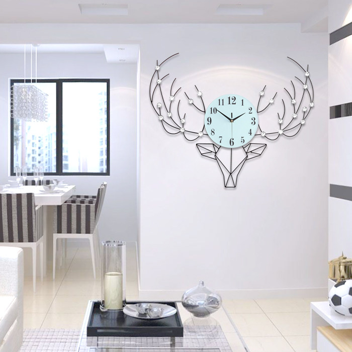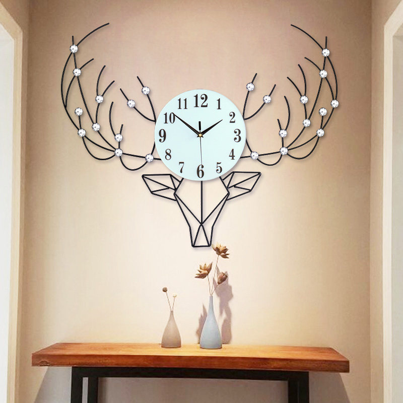Light luxury Nordic simple deer head wall clock Living room household creative decoration watch Light luxury fashion modern clock wall hanging