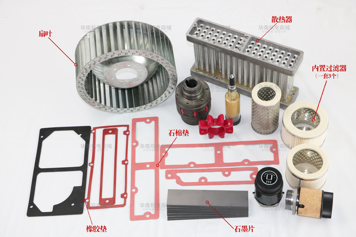 Coupling bumper 60E 80E coupling (motor side) 60E 80E coupling (rotor side) 140E coupling (motor side) 140E coupling (rotor side) 60E 80E rubber pad 60E 80E asbestos mat 140E rubber pad 140E asbestos pad 60E 80E filter (set of three) 140E filter (older) 140E filter (new) 80E fan blade 140E fan blade uncommon accessories 60E 80E front end cover 60E 80E rear end cover 140E front end cover 140E rear end cover inlet valve outlet valve 160E fan blade 250E fan leaf original oil seal