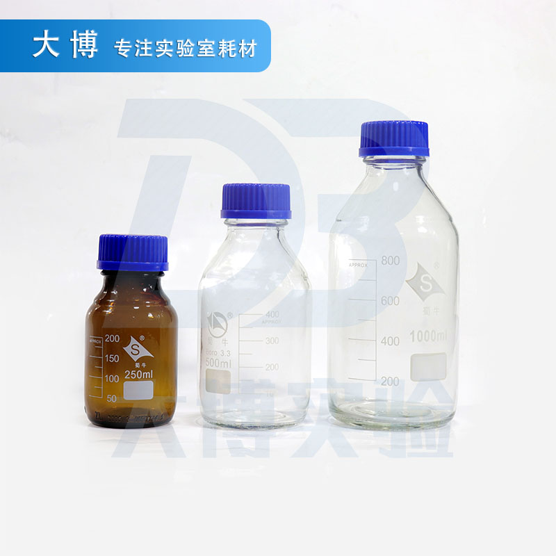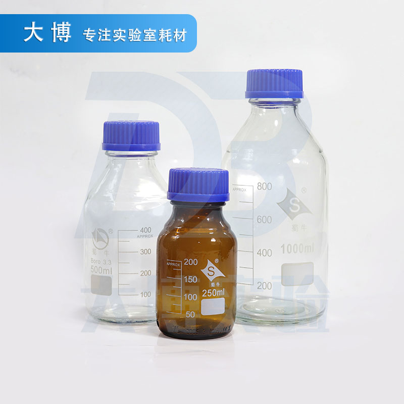 Shu Bull Blue Cover Reagent Bottle 100250500 1000ml High boron silicon clear brown threaded mouth silvermouth bottle
