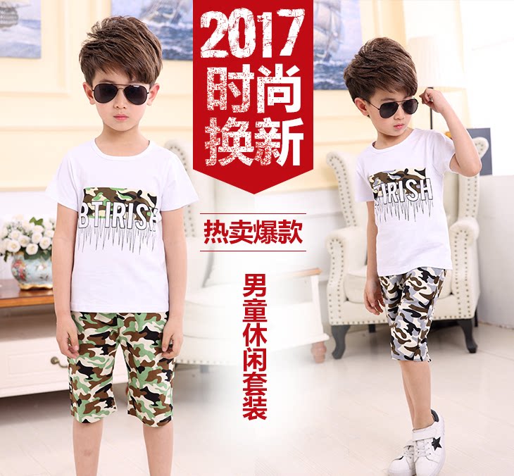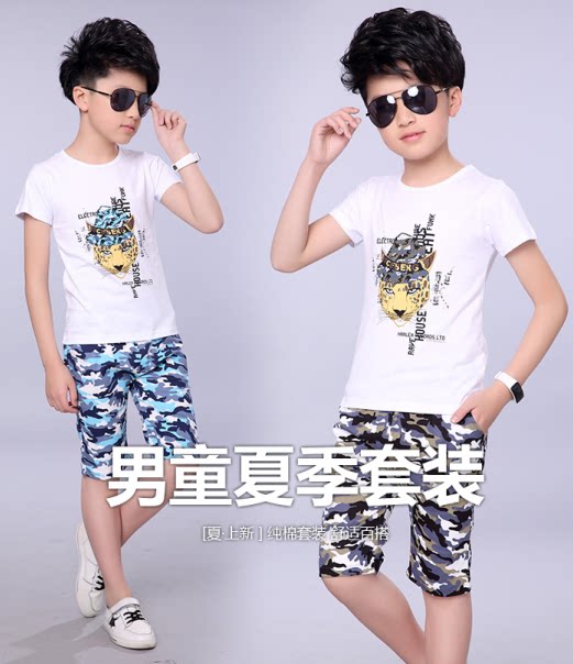 Summer boys suits children's summer sports suits boys casual short-sleeved T-shirts medium and large children's shorts two-piece set 6