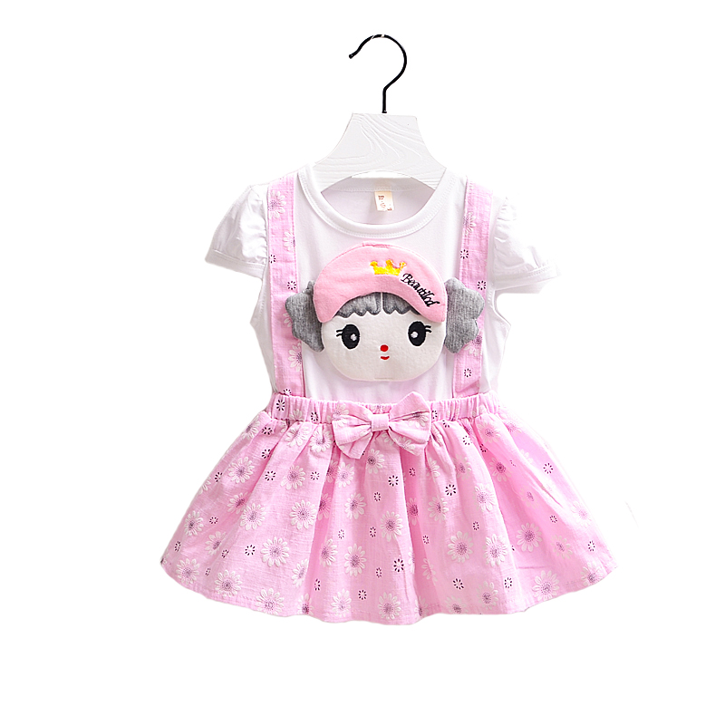 Child Clothing Girl Summer Cuddling Bag Dresses Children Pure Cotton Fake Two Sets Connected Body Foreign Dress 2 Baby Dresses 1-5 Years Old