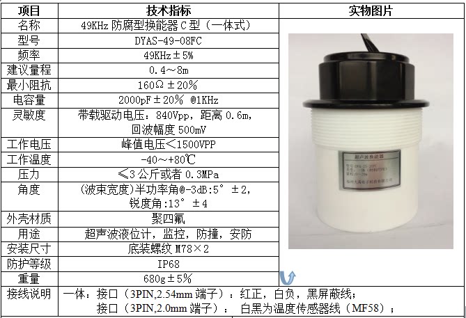 DYAS-49-08FC anti-corrosive ultrasonic liquid level meter water gauge transducer 8 m security monitoring monitor