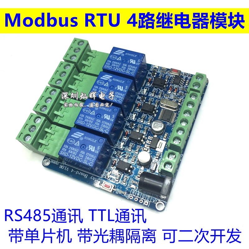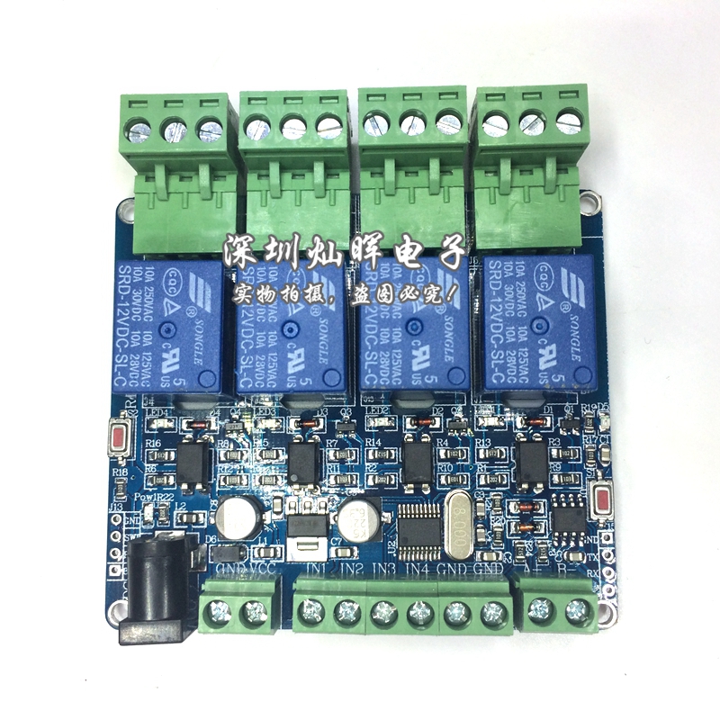 Modbus 4-way relay module four-way input optocoupler isolation RS485 Communication with single wafer