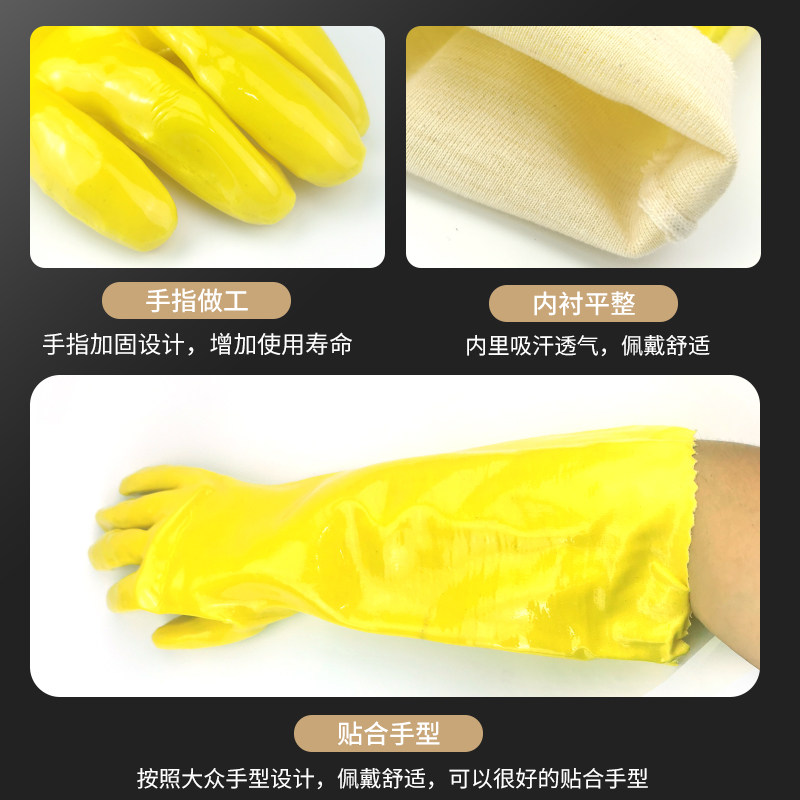 Thickened 28 45CM dipped gloves Cotton wool industrial oil resistant acid and alkali resistant gloves rubber protection waterproof
