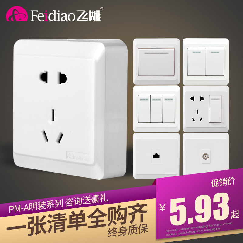 Five holes (surface installation)Three holes 16A (water heater air conditioning socket surface installation) Seven holes (surface installation)Ten holes (surface installation rectangular) Fourteen holes (surface installation)Fifteen holes (surface installation)One open single control(surface installation) One open single control (surface installation) One open single control (surface installation) One open single control (surface installation) One open single control (surface installation) One open single control (surface installation) One open single control (surface installation)